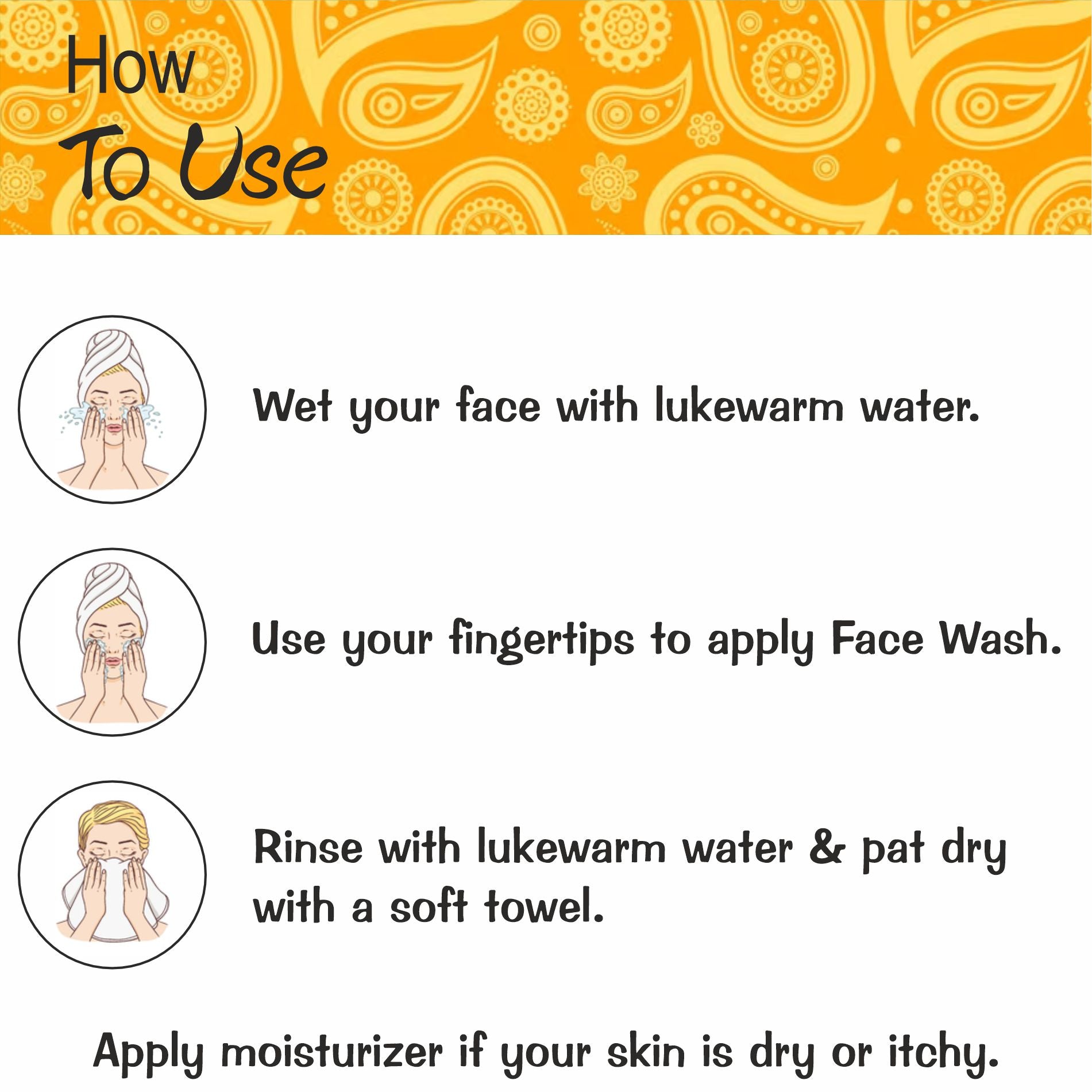 How to Use: Apply a small amount of face wash to your face and neck, Use your fingers to rub the face wash onto your skin, Gently massage your face and neck in small circular motions, Rinse thoroughly